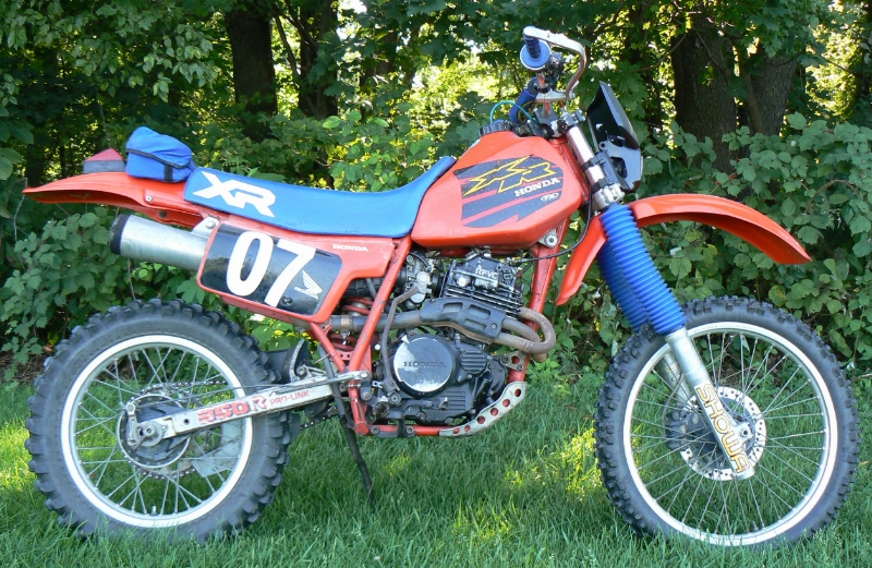| I had a 1983 and 1984 XR350R The '83 was street legal with 12 volt lights and turn signals it even had passenger footpegs installed. They were GREAT bikes! |