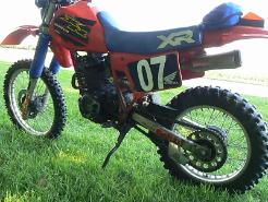 | I had a 1983 and 1984 XR350R The '83 was street legal with 12 volt lights and turn signals it even had passenger footpegs installed. They were GREAT bikes! |