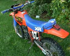 | SOLD 1984 Honda XR350 R. It has just had it's motor professionally rebuilt and has lots of other new parts. Daul carbs, Supertrap exhaust, 6 speed trans, fresh tires. Runs GREAT! Click on a picture to view a larger version. |